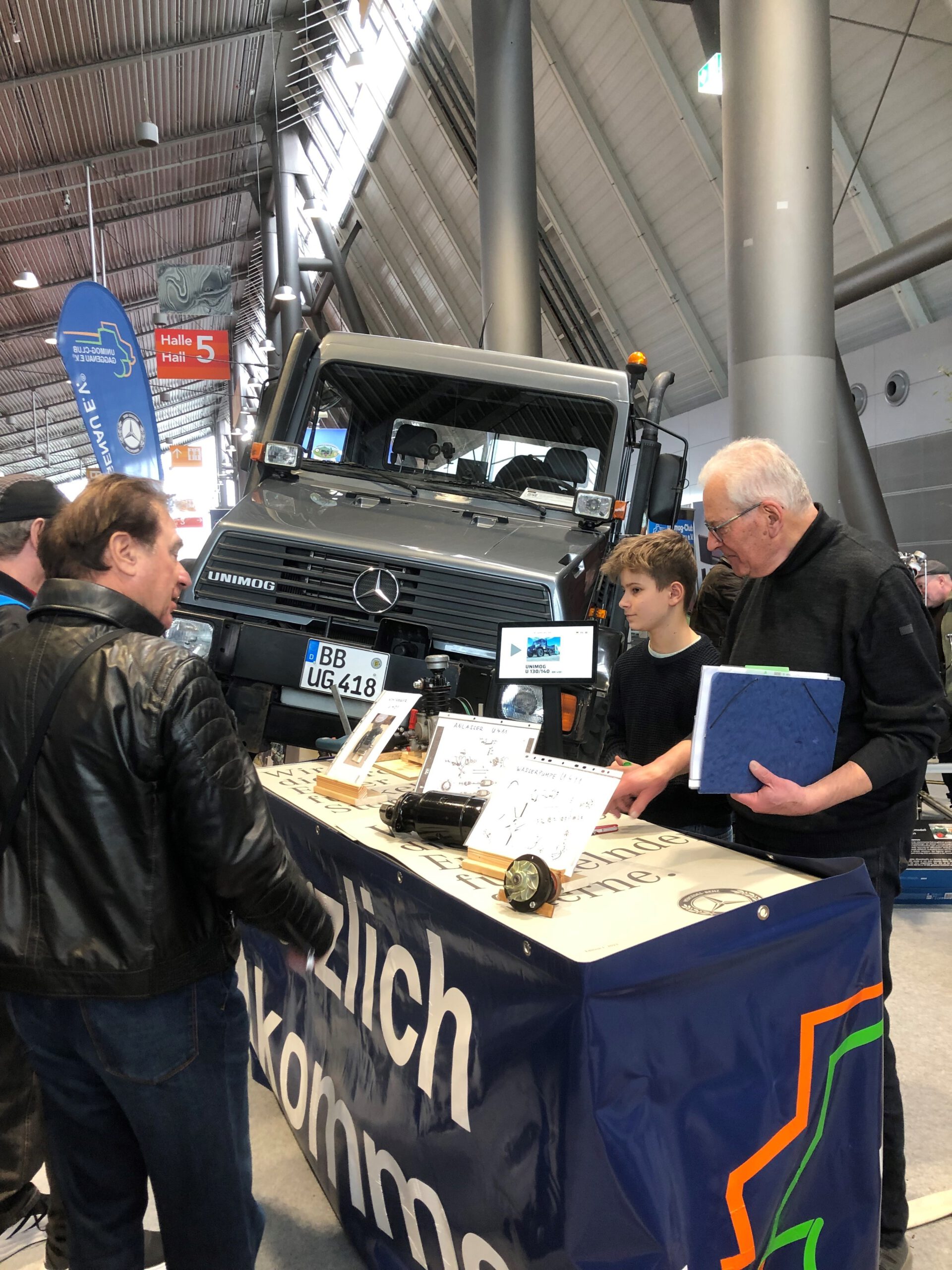 Eine erfolgreiche Messe ging am 22.2.2026 in Stuttgart zu Ende. Wir blicken auf vier Messetage mit vielen Besuchern zurück. Die ausgestellten Unimog 403 mit Fortsausrüstung und 418 waren ein Blickfang und haben viele Messebesucher an den Stand vom UCG gebracht. Wie im letzten Jahr hat auch das Schnittmodell vom Unimogmuseum viel Aufmerksamkeit auf sich gezogen. Am Samstag und Sonntag gab es von unserem Mitglied Siefried Straub, der seinen Enkel Adrian mitgebracht hatte, Informationen zur Instandsetzung von Anlasser, Lichtmaschine und mehr.