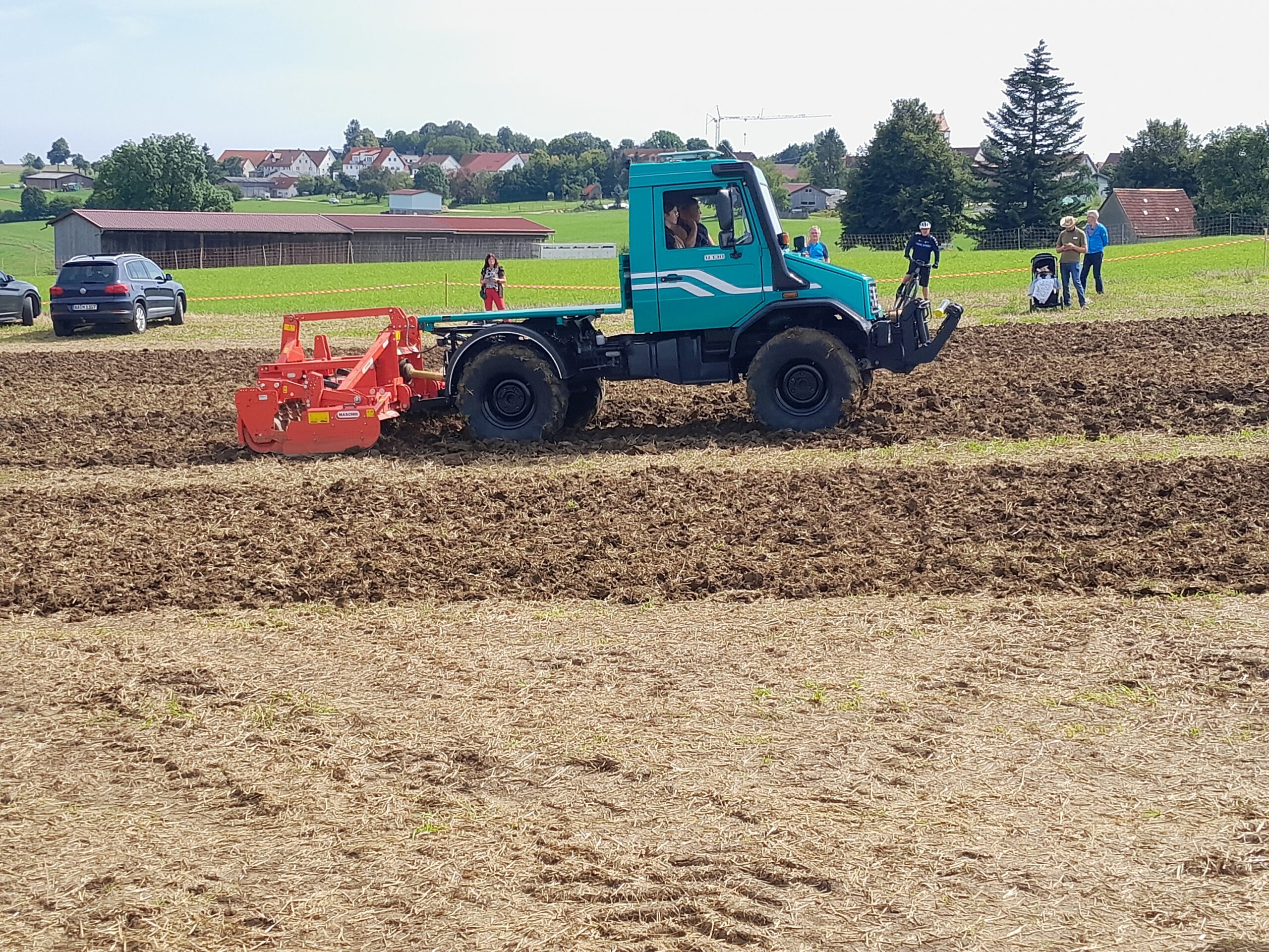 Unweit der Fahrzeug-Ausstellung gab es die traditionelle Feldvorführung von Unimog und MB-trac. Erneut wurde eindrucksvoll gezeigt, dass der Stern auf dem Acker weiterhin leuchtet und mit verschiedenen An- und Aufbaugeräten überzeugt. Herzlichen Dank an Familie Mettang: Wir freuen uns auf das nächste Mal!